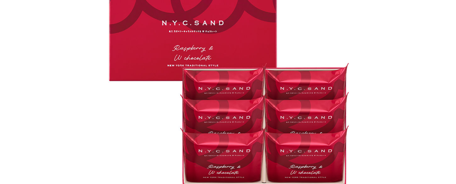 N.Y.C.SAND定番人気の「N.Y.キャラメルサンド」「N.Y.スカッチサンド」に期間限定の味「N.Y.スイートポテトキャラメルサンド」「N.Y.ヘーゼルナッツカカオキャラメルサンド」を、この冬限定のオリジナルパッケージに詰合せました。