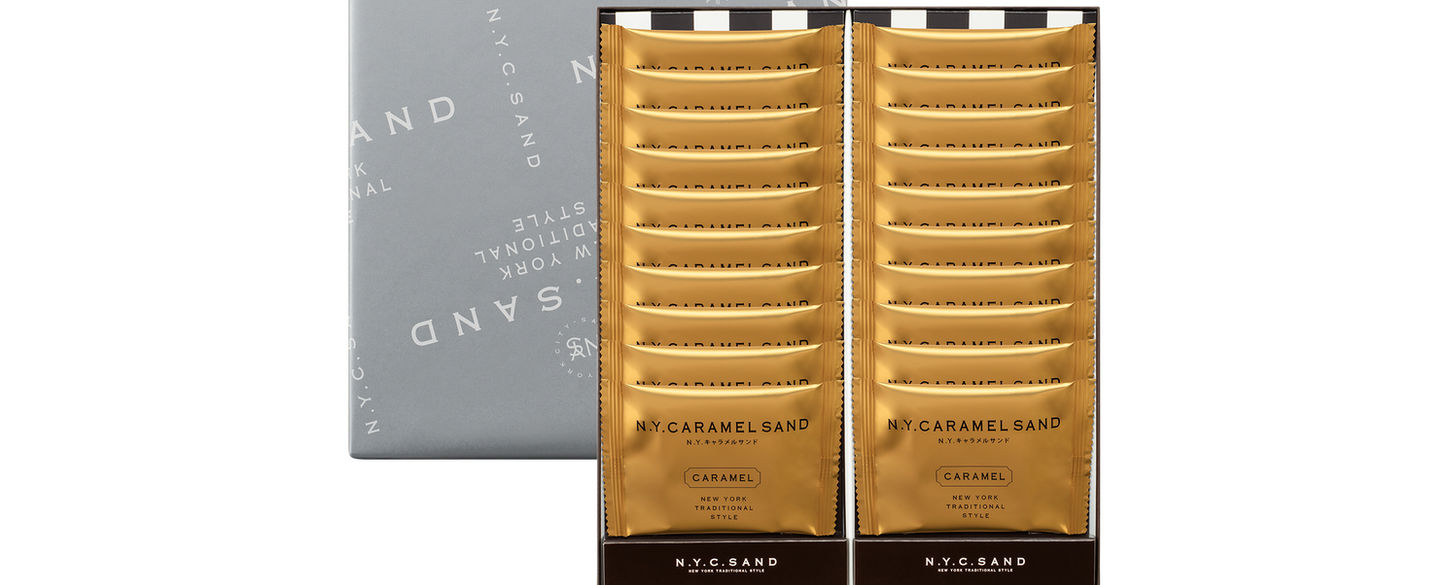 定番商品の「N.Y.キャラメルサンド」「N.Y.スカッチサンド」に期間限定の味「N.Y.ヘーゼルナッツカカオキャラメルサンド」「N.Y.リ ッチスカッチサンド&Wチョコレート」を入れた詰合せギフトボックスです。